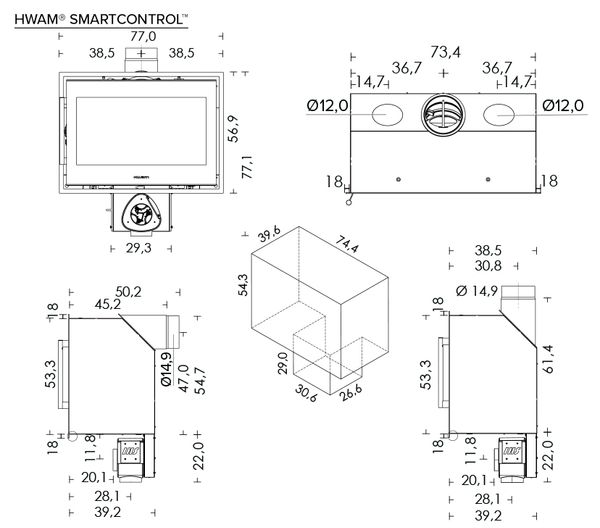 HWAM has developed a technique that ensures that the glass pane always receives heated air from three sides in order to prevent it from becoming sooty.
